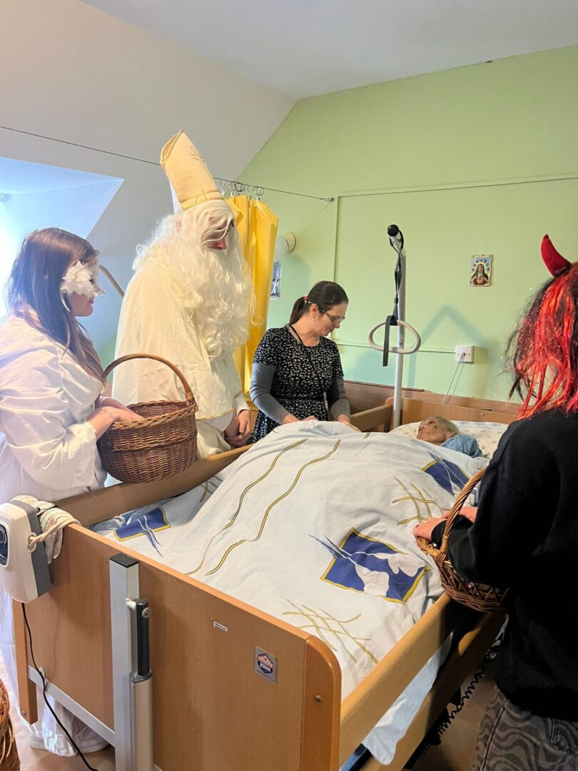 Dňa 6.12.2023 – na sviatok sv. Mikuláša – navštívili žiaci z triedy I.AP Dom Charity sv. Kamila v Žiline, kde prišli vyčariť klientom, ktorými sú starí a chorí ľudia a osoby so zdravotným postihnutím, úsmev na tvári. Naši žiaci sa prezliekli za Mikuláša a jeho pomocníkov. Anjeli rozdávali ovocie a sladkosti, ale aj úsmev na tvári a lásku. Išli tam s láskou a pre radosť klientov charity im spoločne aj zaspievali a pomodlili sa za ich zdravie.