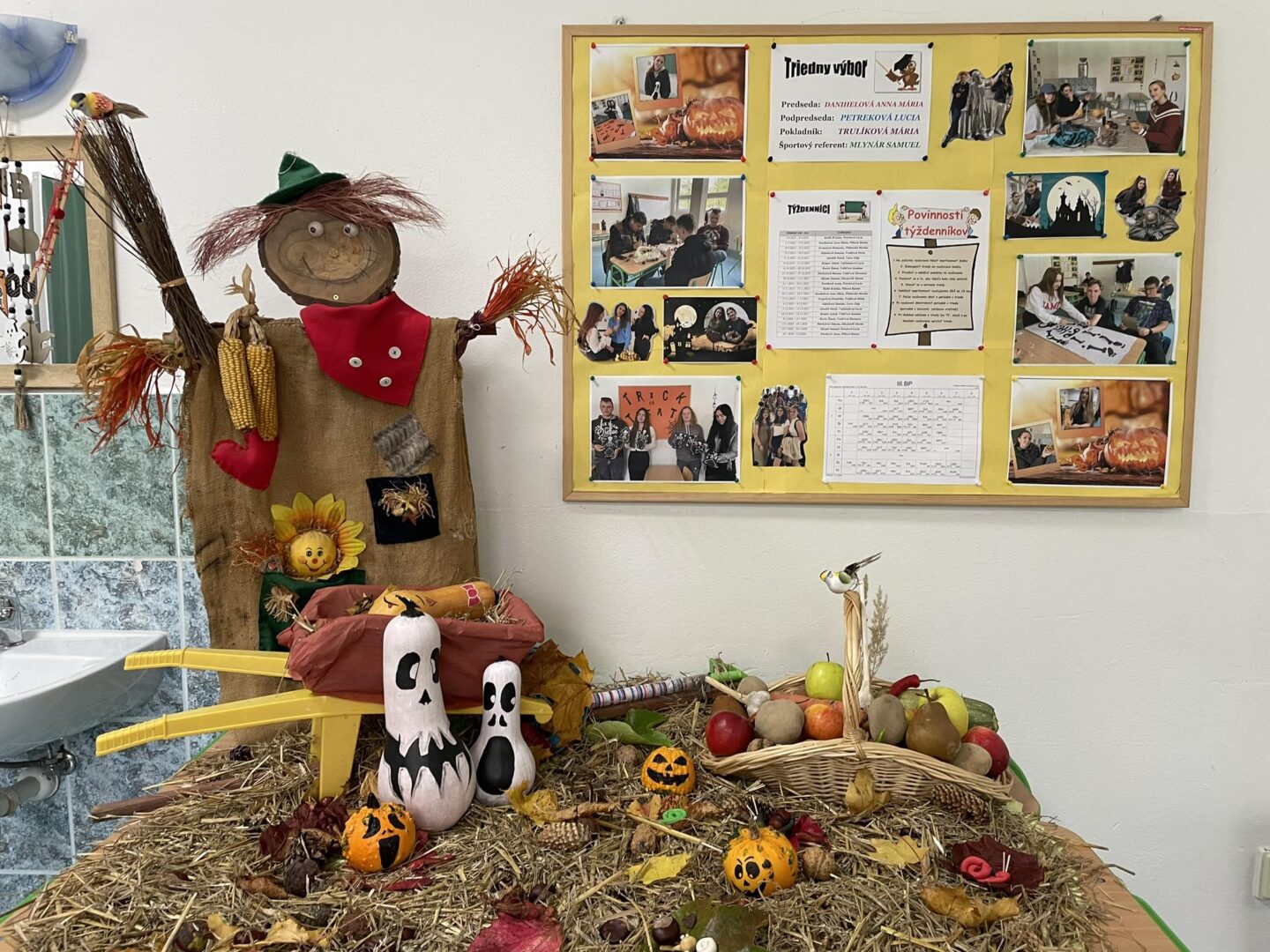 V mesiaci október sa všetky triedy našej školy mohli zapojiť do súťaže vo výzdobe v halloweenskom duchu, alebo vo výzdobe s využitím prvkov jesennej prírody.