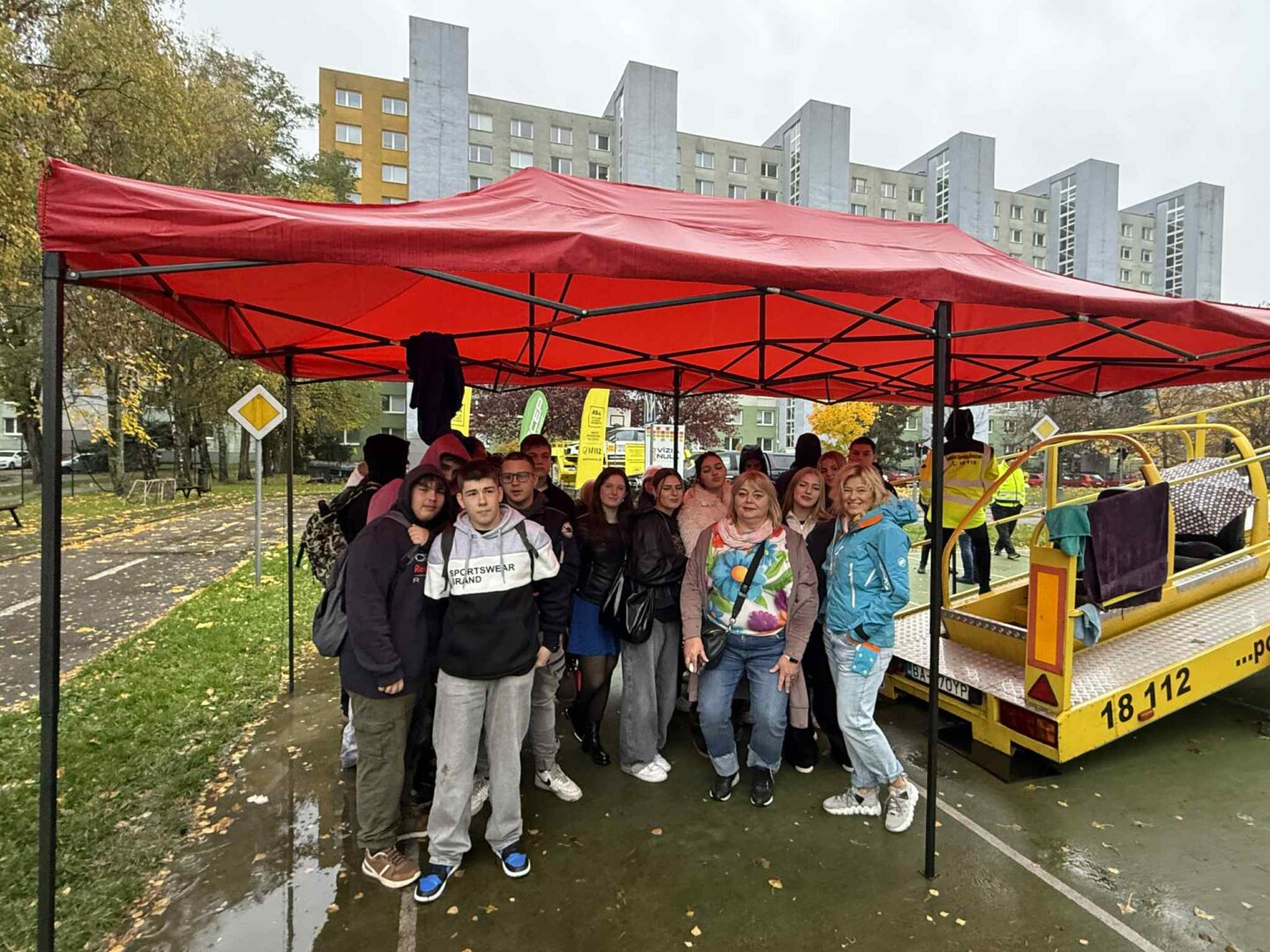 Študenti z III. BP a III. CP sa zúčastnili tejto aktivity. Opäť mali možnosť vyskúšať si zásady prvej pomoci, simulátor prevrátenia a simulátor nárazu. Dokonca ani nepriazeň počasia nepokazila výnimočnosť tohto okamihu.