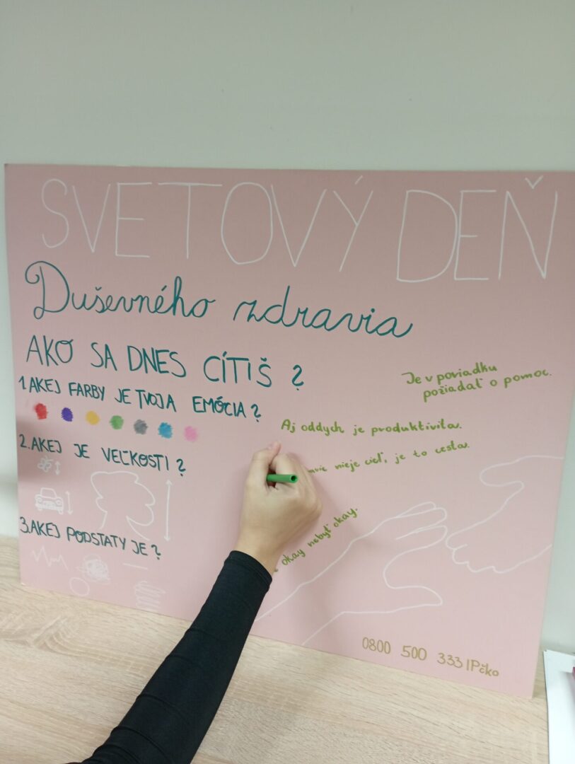 10. október je Svetovým dňom duševného zdravia. V tento deň upriamujeme pozornosť na význam duševného zdravia pre kvalitu života. Je veľmi dôležité, aby sme túto tému a jej vážnosť neustále zdôrazňovali.