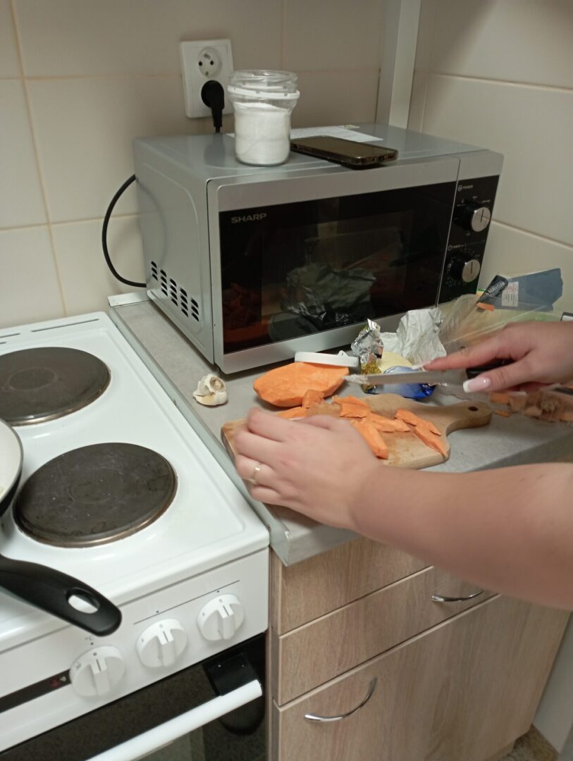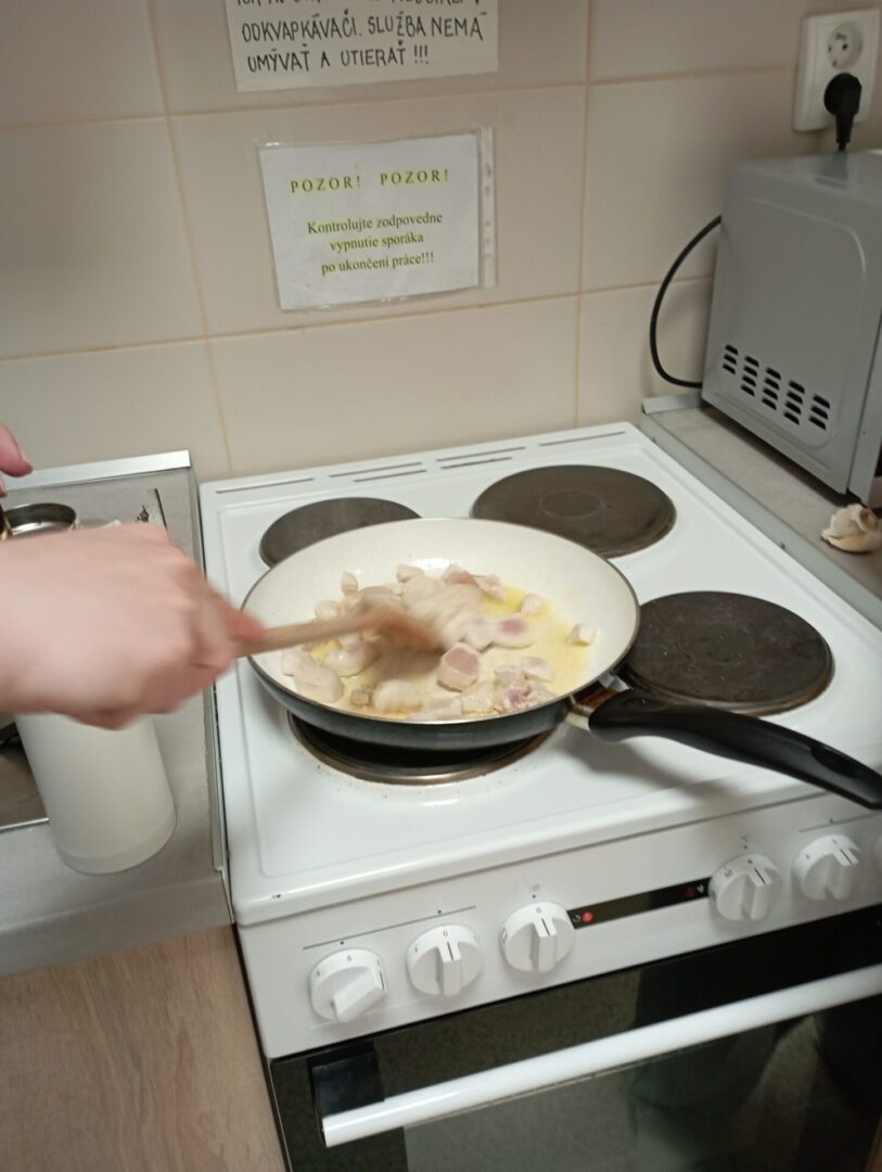 Každá úspešná činnosť našich žiakov motivuje, cítia sa byť užitoční, sebestační, čím získavajú väčšiu samostatnosť a rozvíjajú zručnosti, ktoré sú potrebné pre život v rodine. Žiaci pod vedením vychovávateliek upiekli kakaový koláč a lievance a uvarili batáty s kuracím mäsom. Varíme radi, pretože sa vždy veľmi dobre zabavíme, a samozrejme si aj pochutíme.