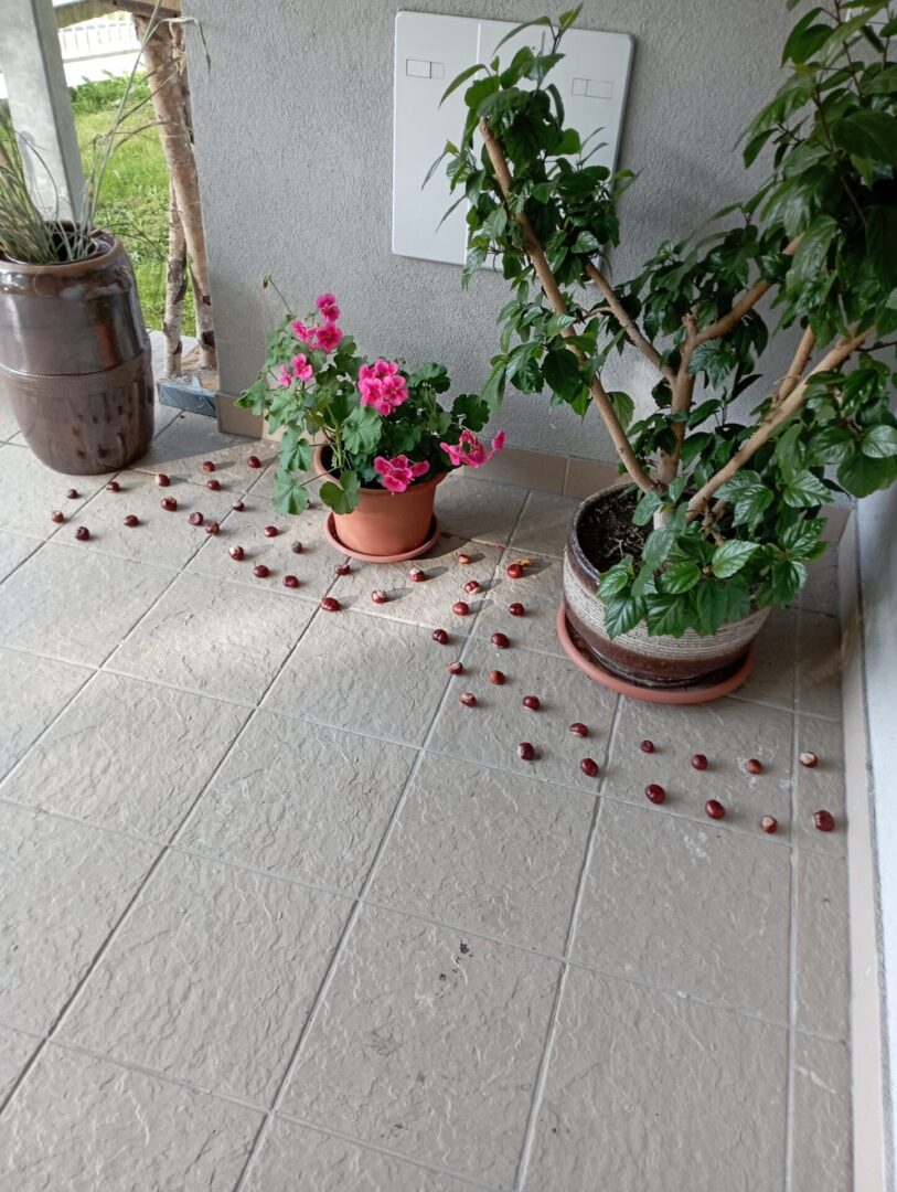 Jabĺčka z korálok, girlanda gaštanov,