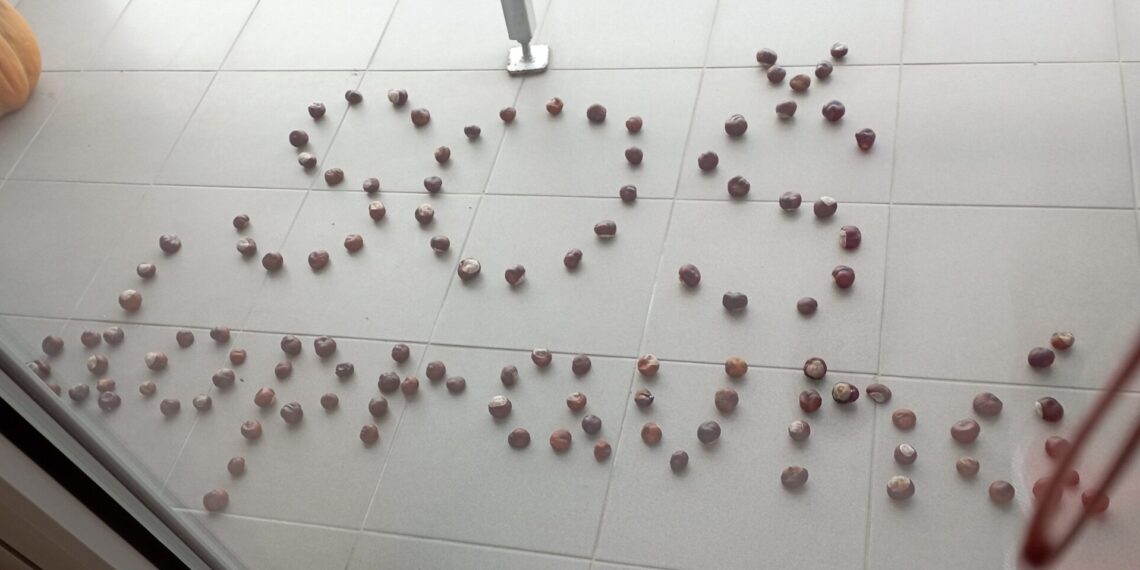 Jabĺčka z korálok, girlanda gaštanov,