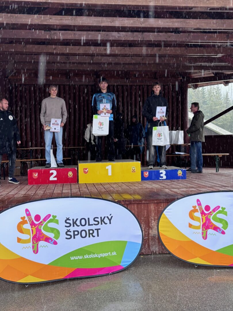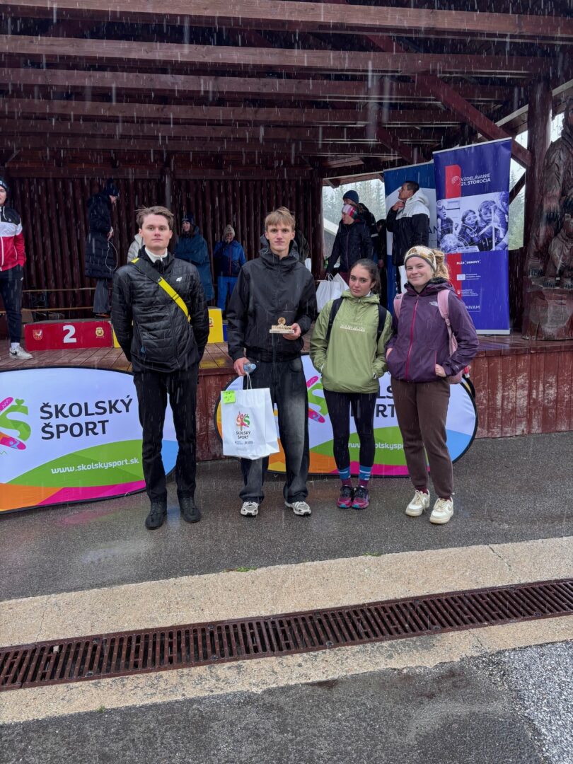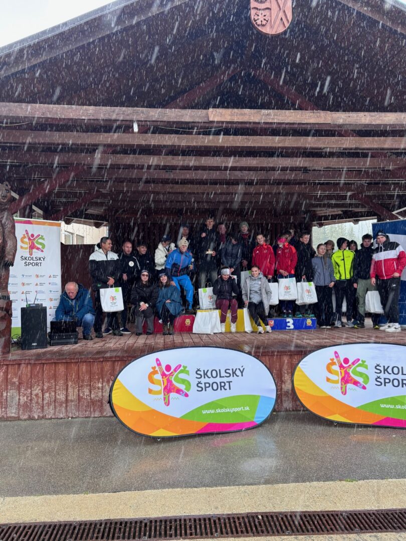 Svoje športové schopnosti aj napriek nepriazni počasia prišli ukázať aj naši žiaci v zložení Lukáš Ťapaják (III. AU), Filip Bandžuch (IV. BP), Ema Jánošíková (III. BP) a Michaela Vojtušová (III. BP), ktorí ukázali, že sa dokážu popasovať aj s takýmito extrémnymi podmienkami. Najväčší úspech zaznamenal Lukáš Ťapaják, ktorý v konečnom hodnotení, v konkurencii 185 pretekárov, obsadil krásne 3. miesto, čím si vybojoval miesto na stupňoch víťazov. Nezaostávala ani Emka Jánošíková, ktorá rovnako v tak silnej konkurencii dievčat z celého Slovenska – 179 pretekárok, skončila na 7. mieste. Rovnako tak sme dosiahli úspech aj v tímovom zoskupení – medzi 105 zúčastnenými školami sme sa umiestnili na 13. mieste, čo je v takej obrovskej konkurencii vynikajúci výsledok. Michaela Vojtušová sa umiestnila na 61. mieste a Filip Bandžuch na 137. mieste.