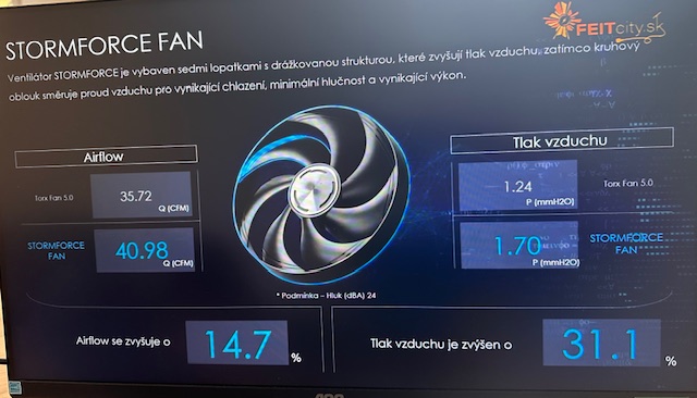 Druhou bola hardwarová firma MSI, ktorá pripravuje grafické karty aj pre DESKTOP aj NOTEBOOK. Ich grafické karty sú tiché, a rovnako tiché sú aj ventilátory so siedmymi lopatkami. Okrem toho firma vyrába na základe požiadaviek Mercedesu notebooky pre túto firmu ako limitovanú edíciu. Silnou stránkou je práve chladenie, notebooky sa neprehrievajú.