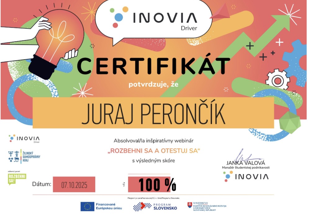 Dňa 07. 10. 2025 sa na našej škole uskutočnil webinár na tému „Rozbehni vlastný nápad“, ktorého sa zúčastnili študenti z triedy III. BP a III. CP.