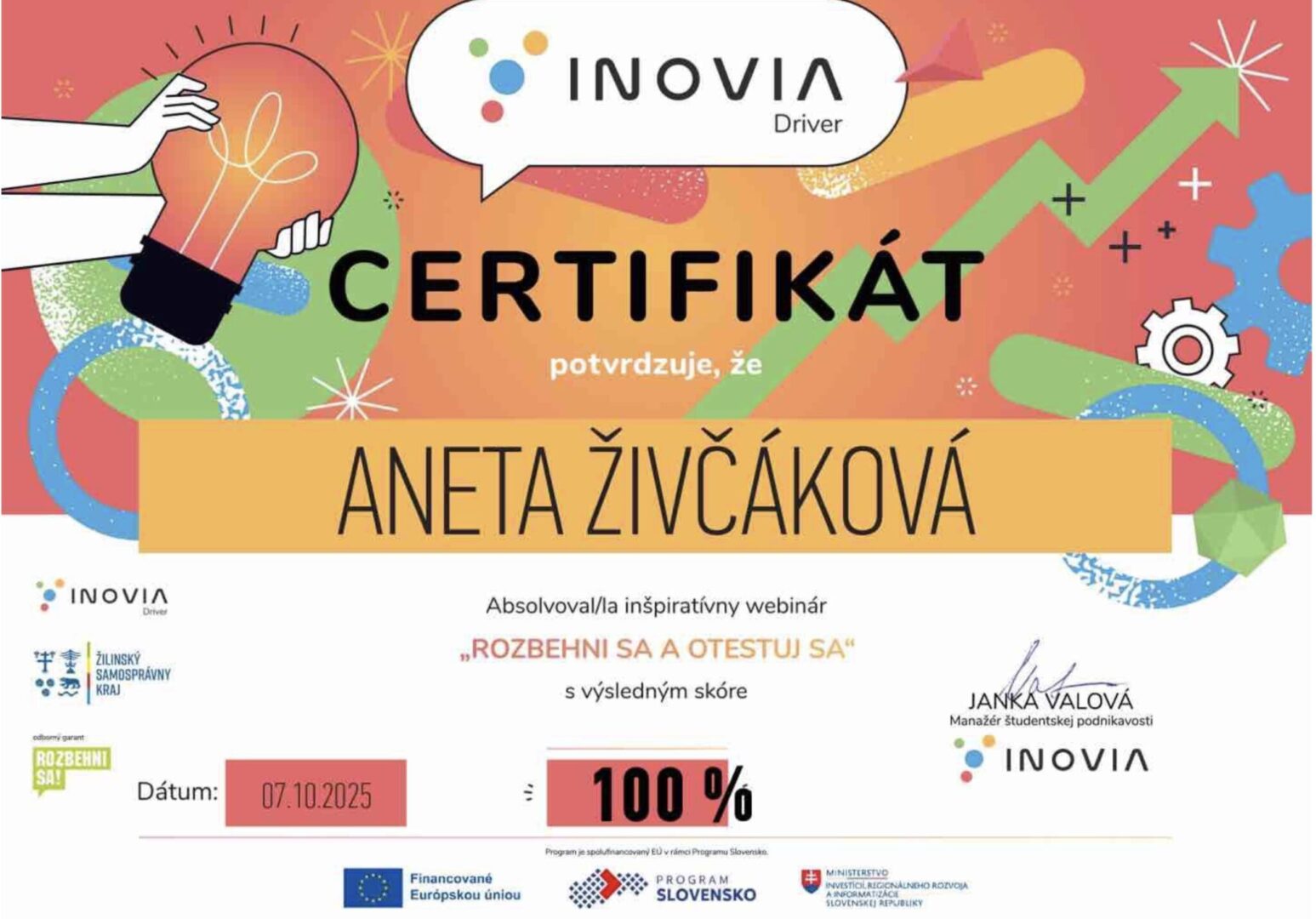 Webinár skončil výstupným testom a úspešným riešiteľom prišiel aj certifikát.
