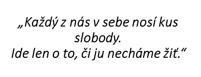 Ako to krásne vystihol jeden z recitujúcich žiakov: „Každý z nás v sebe nosí kus slobody. Ide len o to, či ju necháme žiť.“