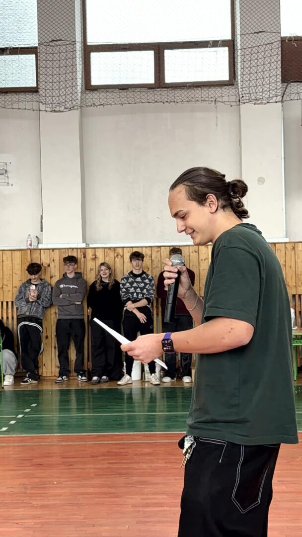 Slávnostnú atmosféru doplnila aj kultúrna vložka, o ktorú sa postarali naši štvrtáci. Nikola Černáková svojim spevom a Martin Prílepok hrou na heligónku vytvorili príjemnú atmosféru a ukázali, že študentský život nie je len o povinnostiach, ale aj o zábave.