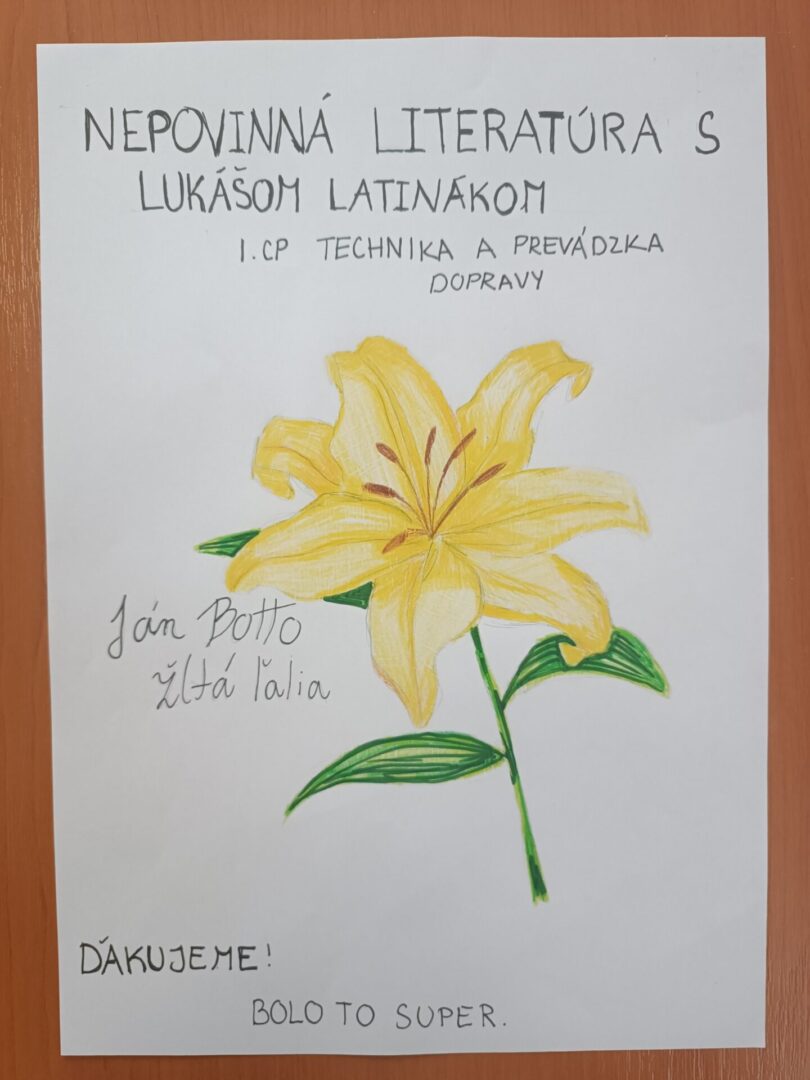 Podujatie Nepovinné čítanie rozosmialo, prekvapilo a hlavne ukázalo, že literatúra vie byť skvelým zážitkom. Latinák nás previedol vývojom literatúry, recitoval Žltú ľaliu a žiakom dokonale priblížil sylabický veršový systém. Podujatie bolo pre našu školu príjemným oživením a pripomenulo nám, že literatúra môže byť nielen predmetom, ale aj zážitkom.