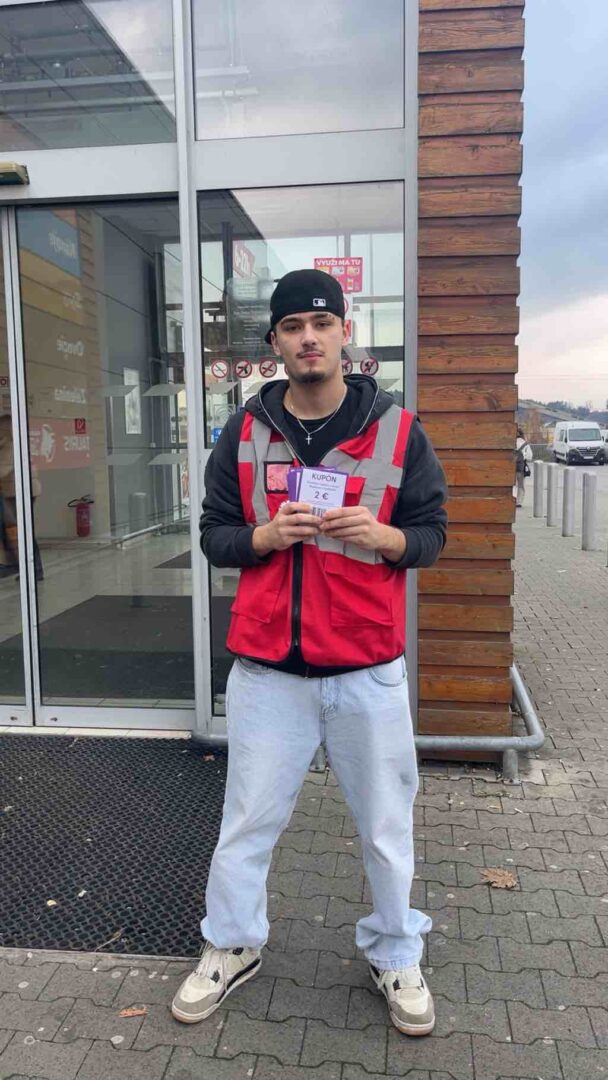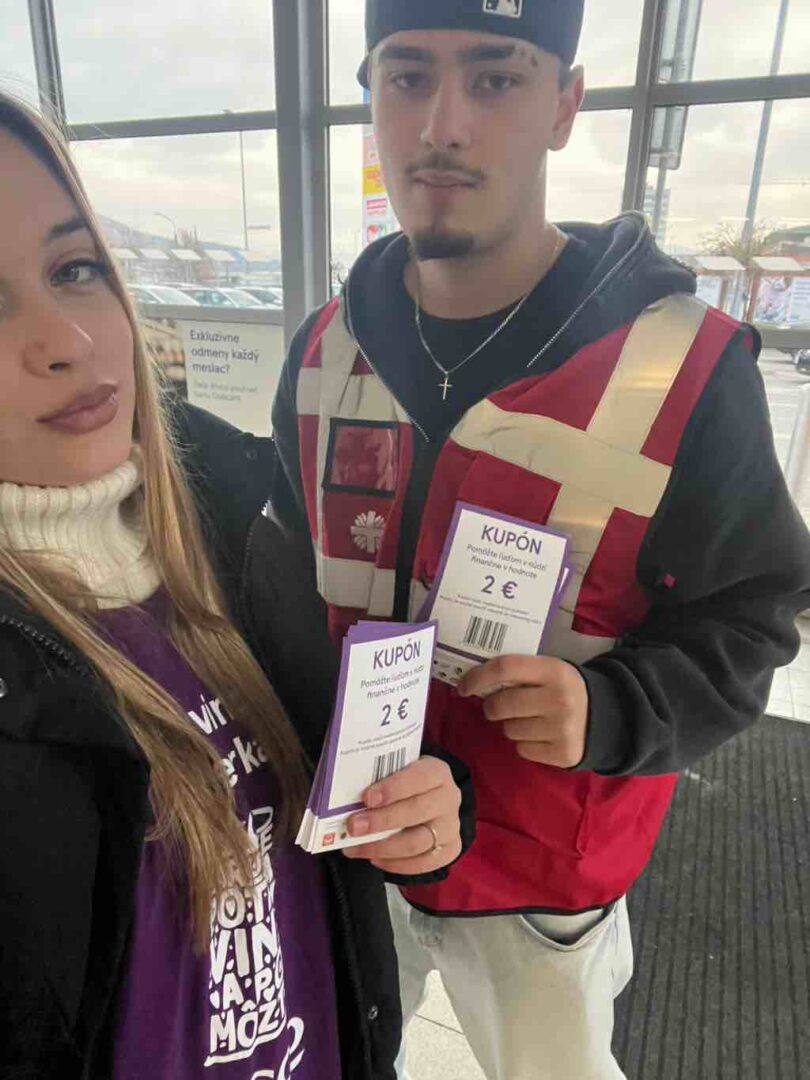 Rovnako sa aj tento rok zapojila naša škola do charitatívnej zbierky prostredníctvom dobrovoľníkov z III. AP: Lukáša Maceka, Lucie Chabadovej, Adriany Kubíkovej, Veroniky Majerovej, Filipa Tinka, Samuela Párničana, Kiari Michálkovej a Sofii Mišejkovej, ktorí rozdávali letáky a informovali zákazníkov predajne. Letáky obsahovali kupóny na darovanie potravín.
