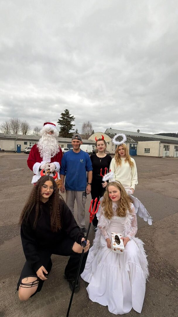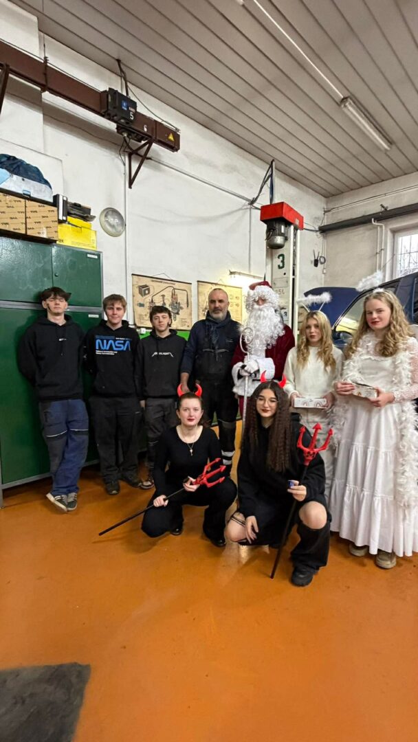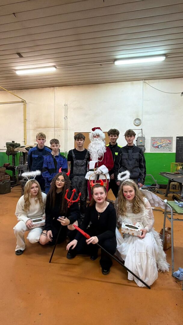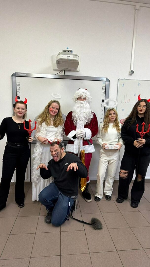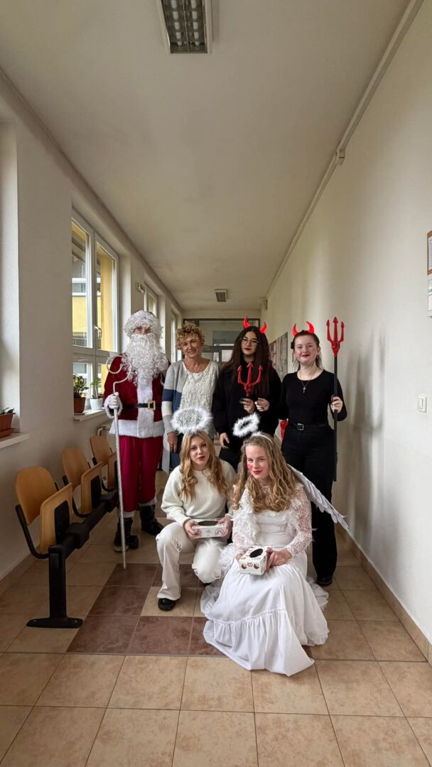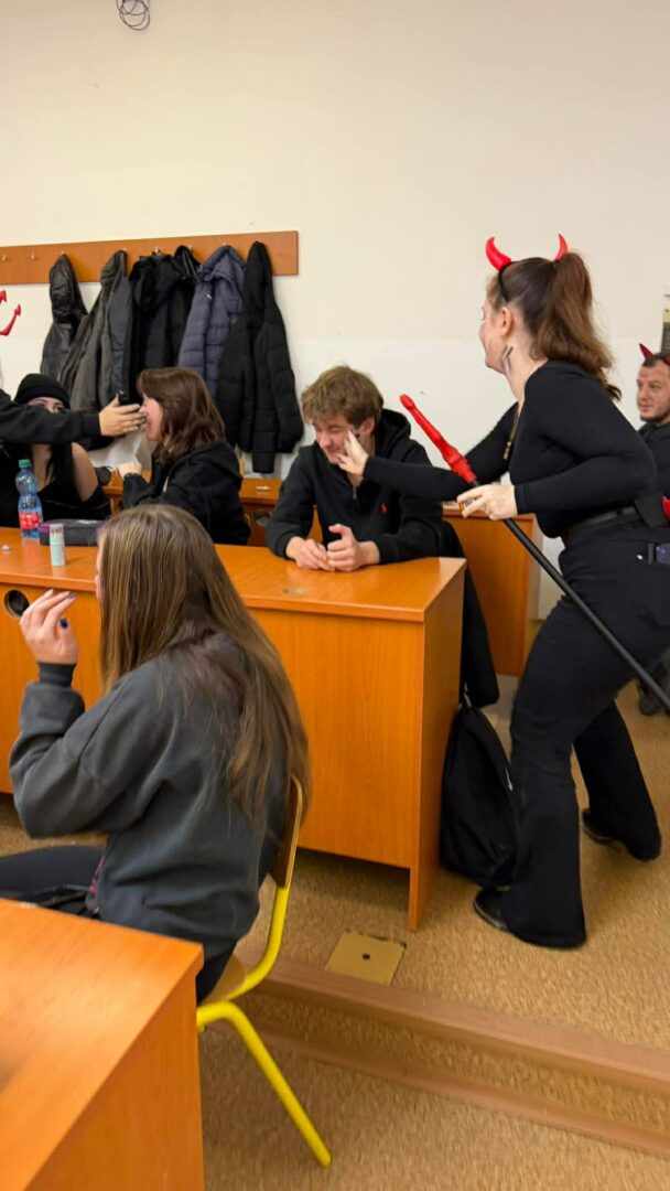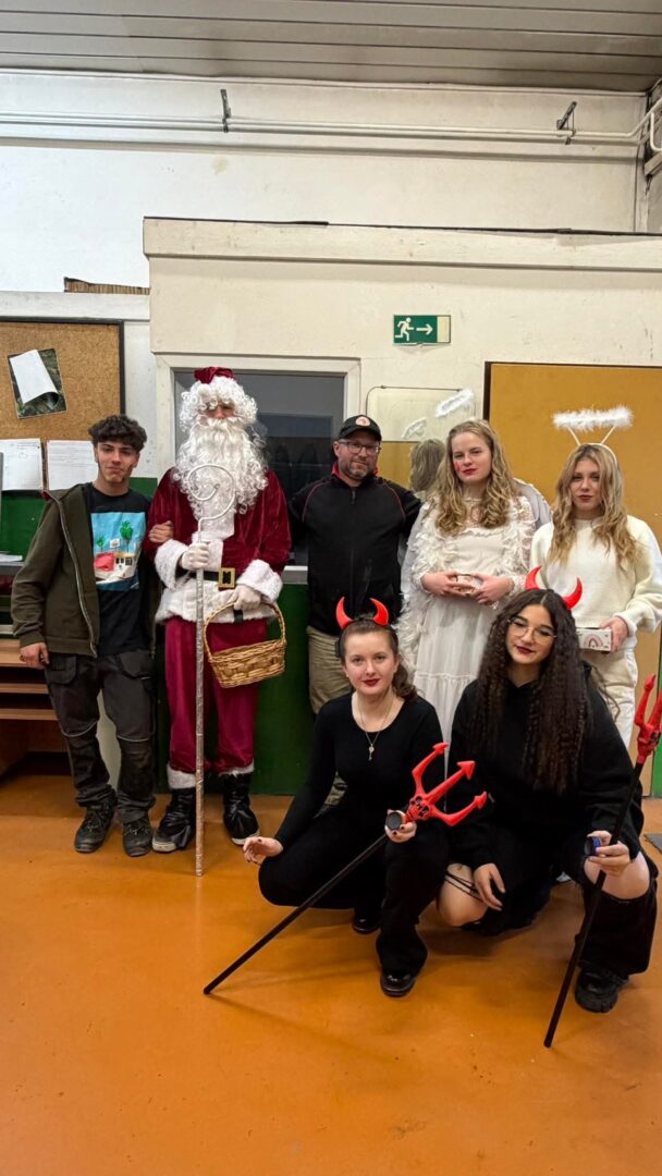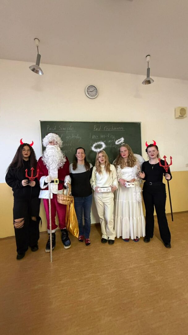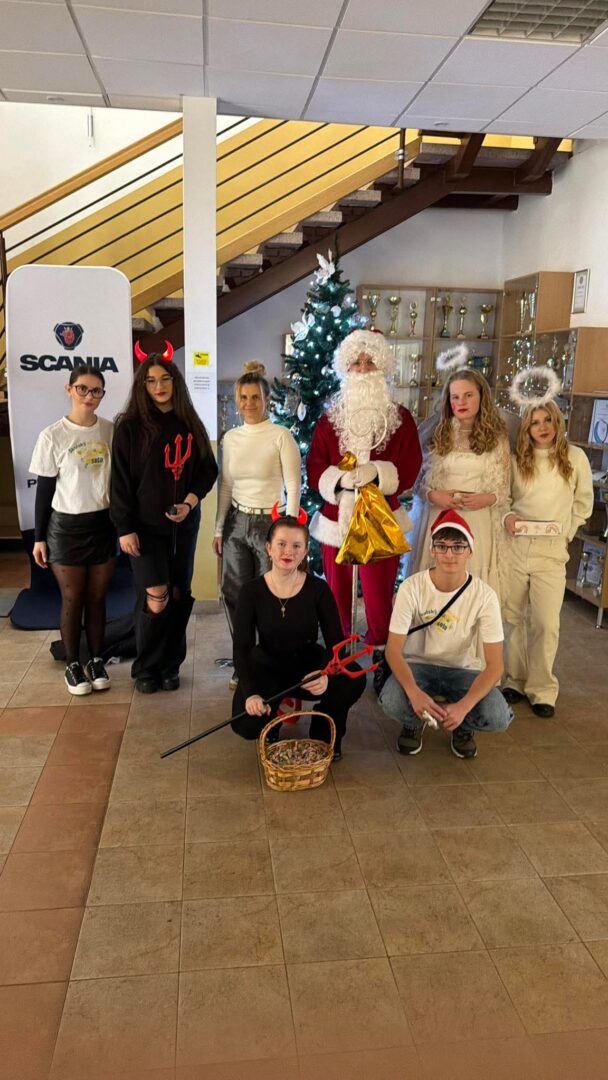 Ten náš „dopravácky“ sa rozhodol, že aj našim žiakom spestrí toto vianočné obdobie. Do školy dorazil v dobrej nálade, sprevádzaný svojimi tradičným pomocníkmi – anjelmi a čertami, ktorí sa postarali o dobrú náladu počas vyučovania. Atmosféra bola sviatočná a srdečná.