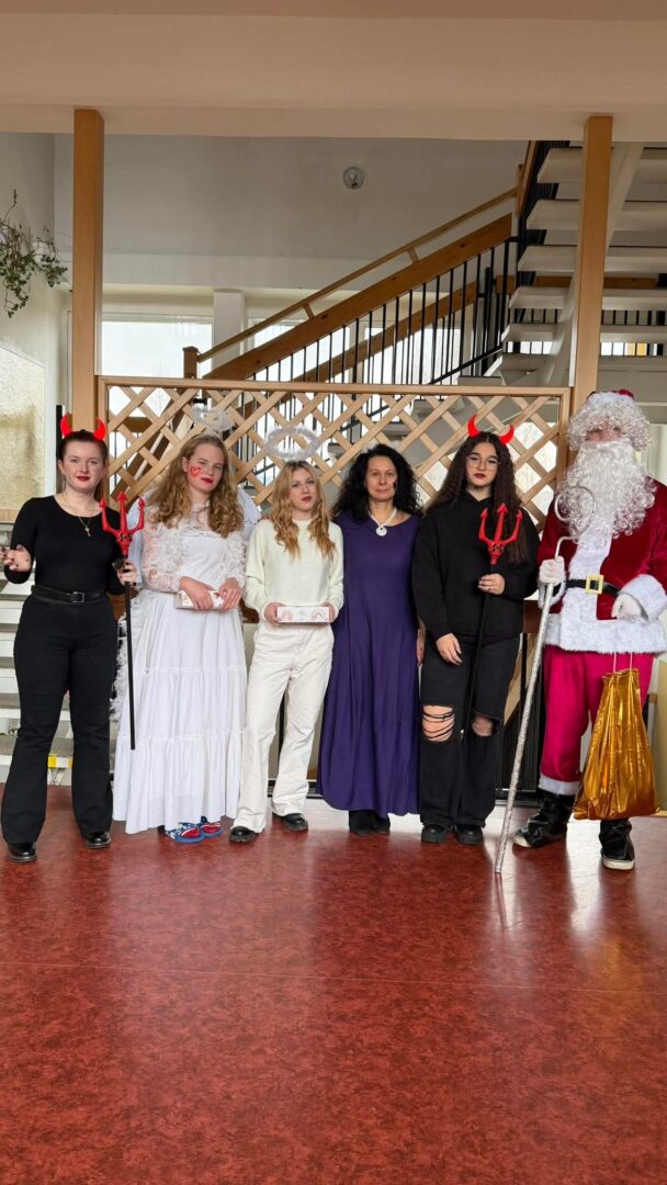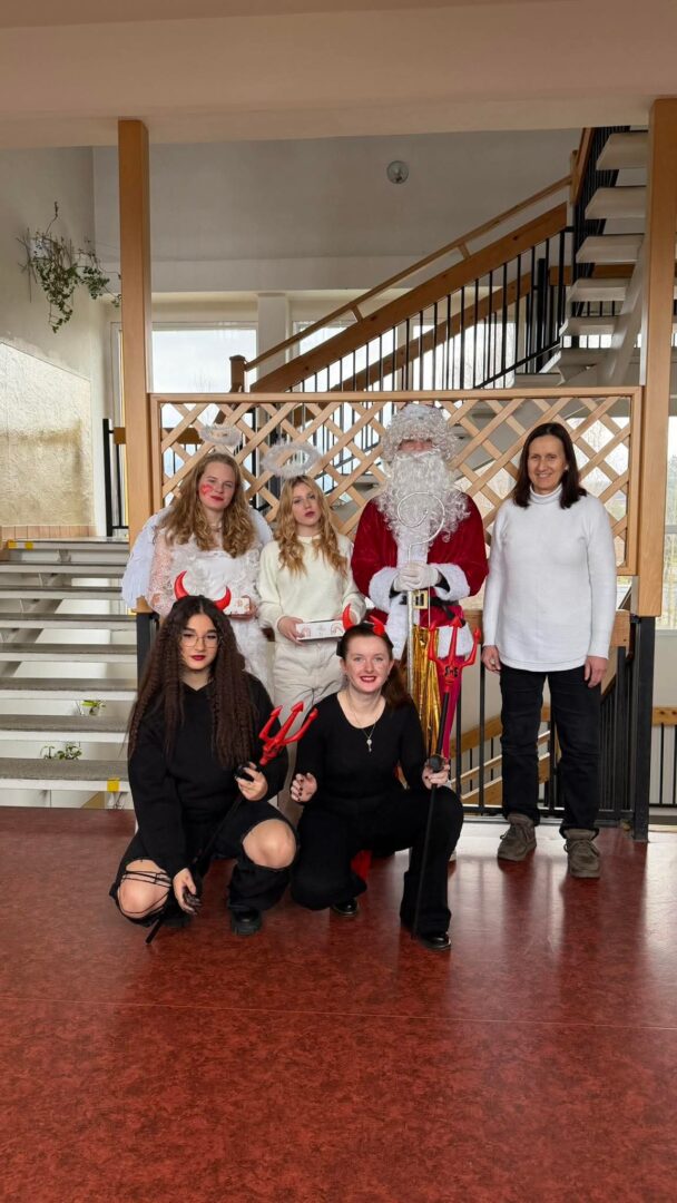 Súčasťou mikulášskeho dňa bola aj charitatívna zbierka Mary‘s Meals, ktorá pomáha meniť životy detí, ktorým chudoba a hlad bránia v prístupe k vzdelaniu. Preto sme radi, že Mikuláš nám spolu s anjelmi ukázal, že ani našim žiakom a pedagógom nie je ľahostajný osud detí, ktoré žijú v skromných podmienkach a kde často chýbajú peniaze na základné potreby. Spoločne sa nám podarilo vyzbierať 102 eur, ktoré by sme radi odovzdali tým, ktorí to najviac potrebujú. Tento krásny čin solidarity a spolupatričnosti dodal celému dňu ešte hlbší zmysel a všetkým patrí obrovské ĎAKUJEME.