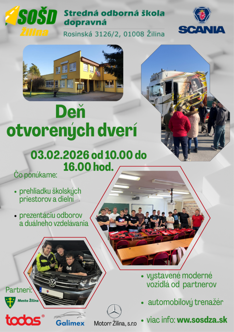 Stredná odborná škola dopravná, Rosinská 3126/2, Žilina | tel.: 041/202 8850 | e-mail: sekretariat@sosdza.sk