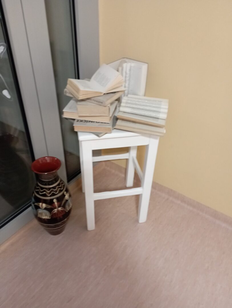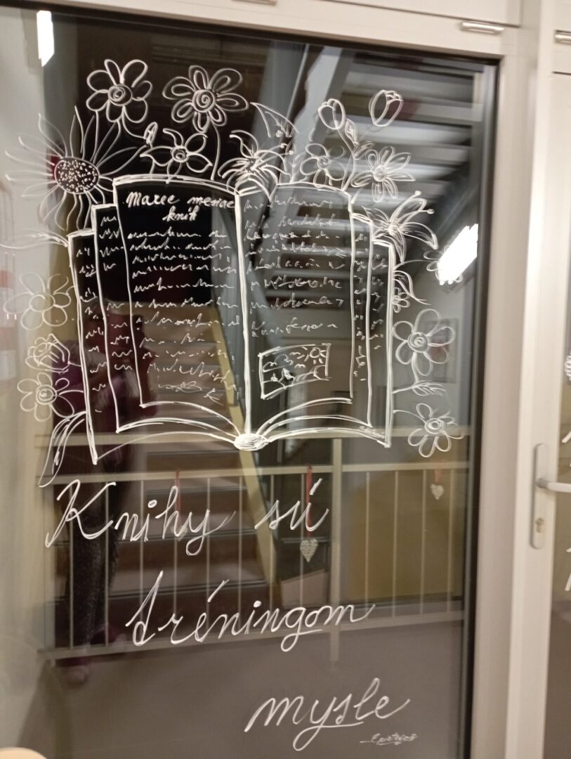 Potom nám prečítali zaujímavé úryvky z ich kníh – našli zaujímavé myšlienky, posolstvá alebo vtipné časti. Následne spolu pripravili nástenku, na ktorú, tematicky, namaľovali knihy. Ako posledné vyrobili pomocou zošitia strán pestrofarebný zápisník na knihy.