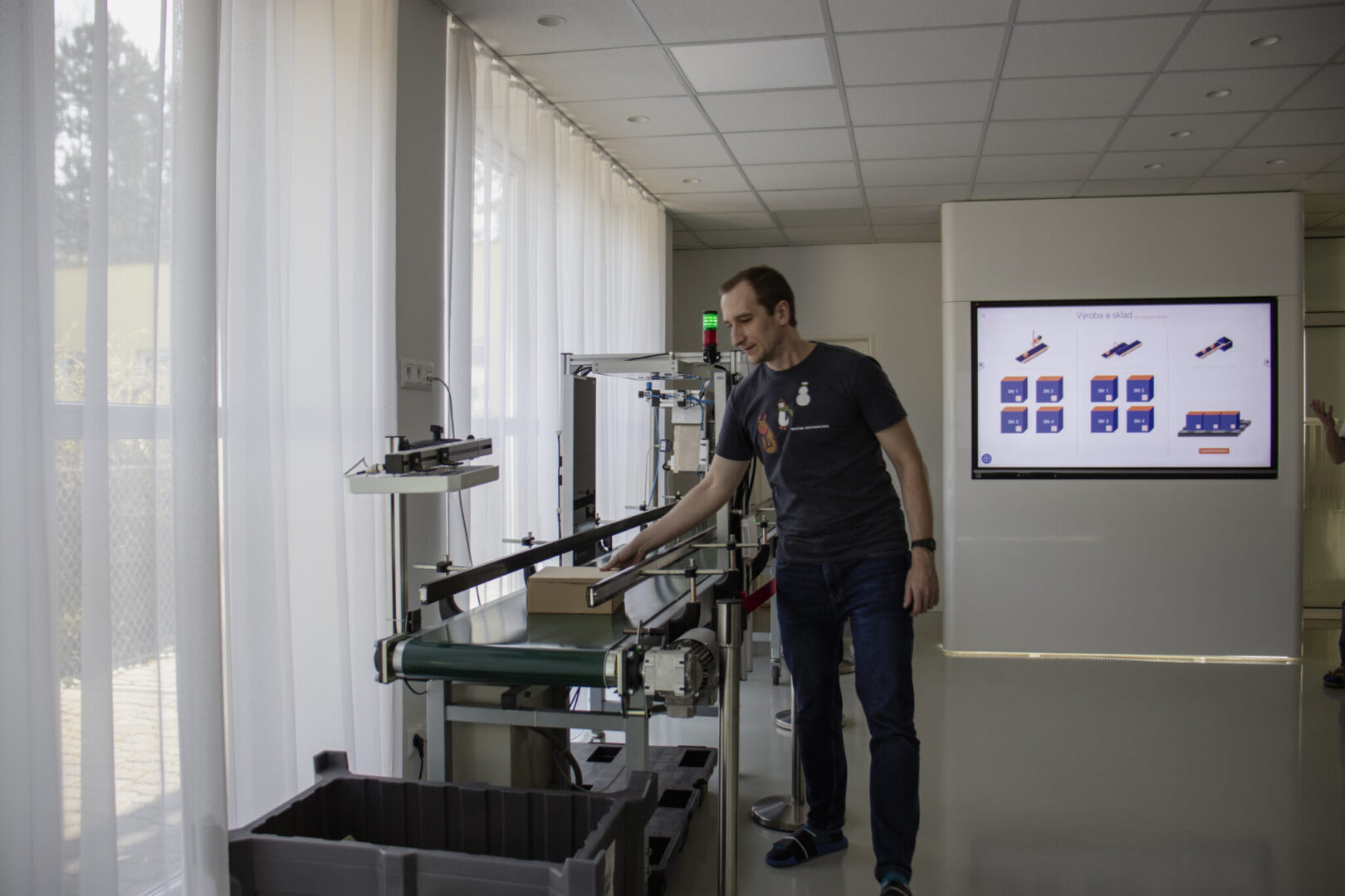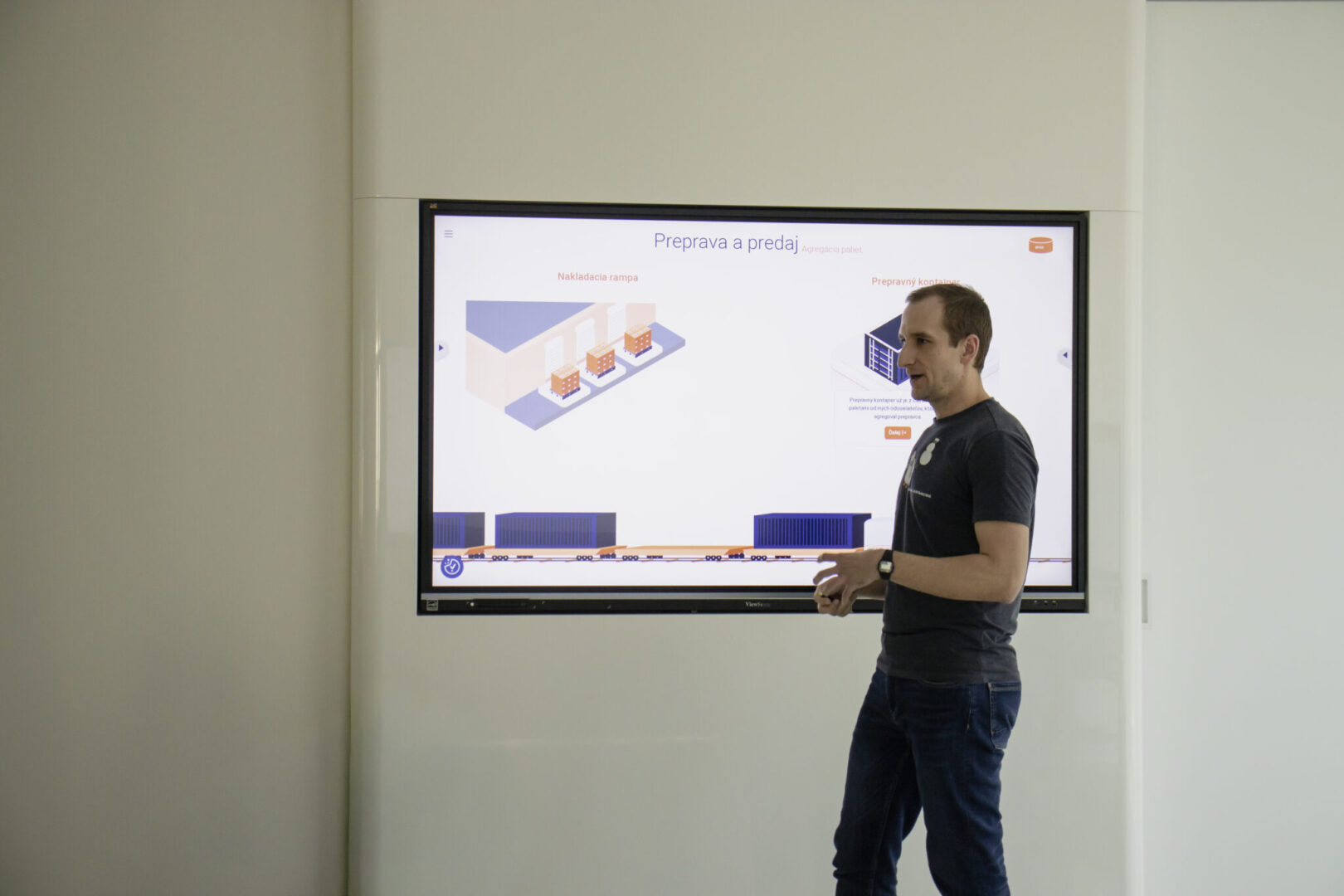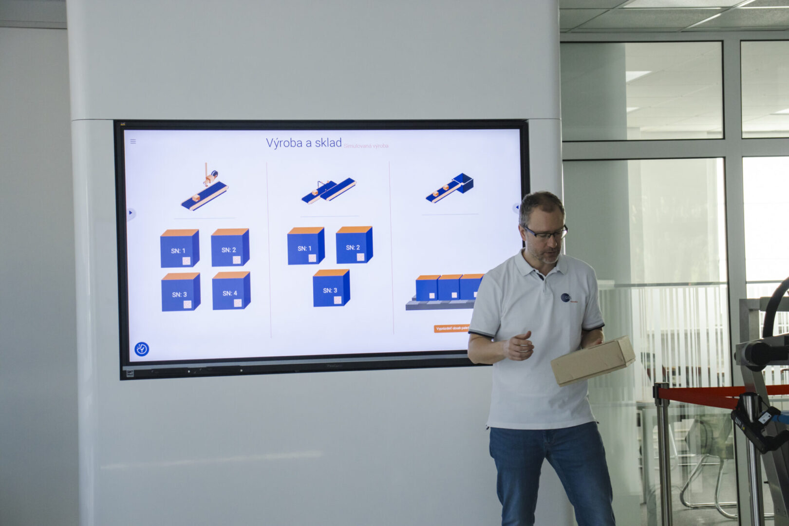 Pre lepšie pochopenie bola celá problematika demonštrovaná na modelovej situácii, ktorá zobrazovala reálny priebeh logistického procesu: od objednávky tovaru obchodom, cez jeho prípravu a expedíciu výrobcom, následnú prepravu v rámci kombinovanej dopravy (cestná a vodná doprava), až po jeho finálne naskladnenie v obchodnej prevádzke.