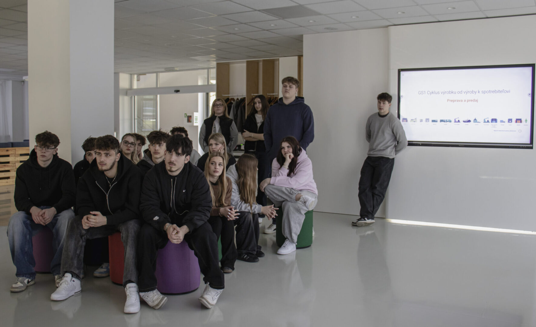 Dňa 18. marca 2026 sa žiaci triedy III. AP zúčastnili odbornej exkurzie v laboratóriách spoločnosti GS1 Slovensko, ktorá je jedinou licencovanou organizáciou pre správu a registráciu štandardov GS1 na území Slovenskej republiky. Tieto štandardy predstavujú globálny systém identifikácie, sledovania a výmeny dát, ktorý pomáha firmám zefektívniť a zabezpečiť ich obchodné a logistické procesy.