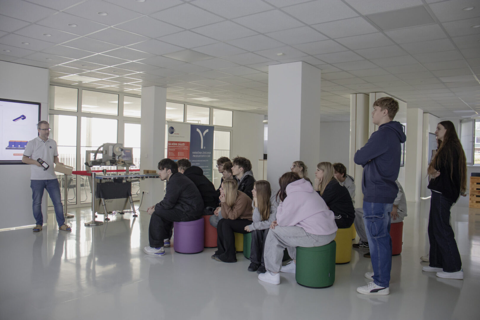 Počas exkurzie boli žiakom predstavené základné princípy fungovania systému GS1, najmä oblasť automatickej identifikácie prostredníctvom čiarových kódov (EAN/GTIN), ktoré slúžia na jednoznačné označenie výrobkov v obchodnej sieti. Žiaci sa oboznámili aj s tým, ako sa tieto identifikátory evidujú a spravujú – napríklad prostredníctvom nástrojov, akým je služba EAN online.
