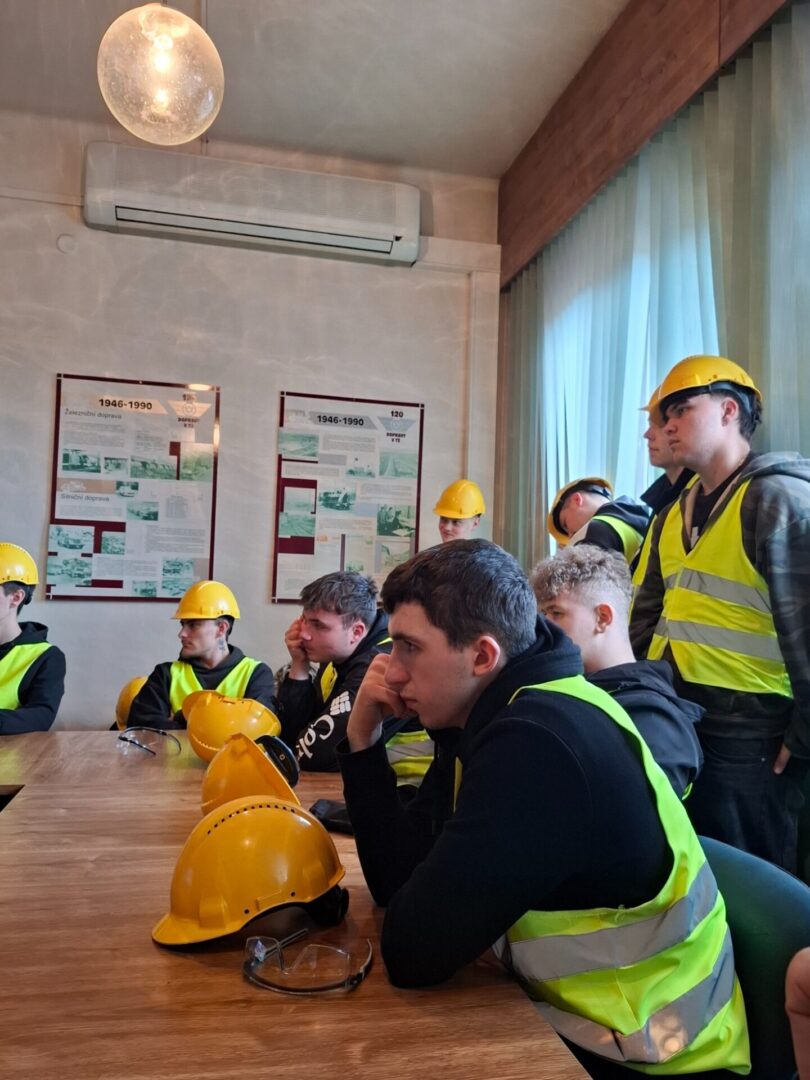 Po privítaní a oboznámení sa s históriou podniku sme dostali ochranné pomôcky – prilby, okuliare a reflexné vesty. Takto vybavení sme sa presunuli do areálu podniku.